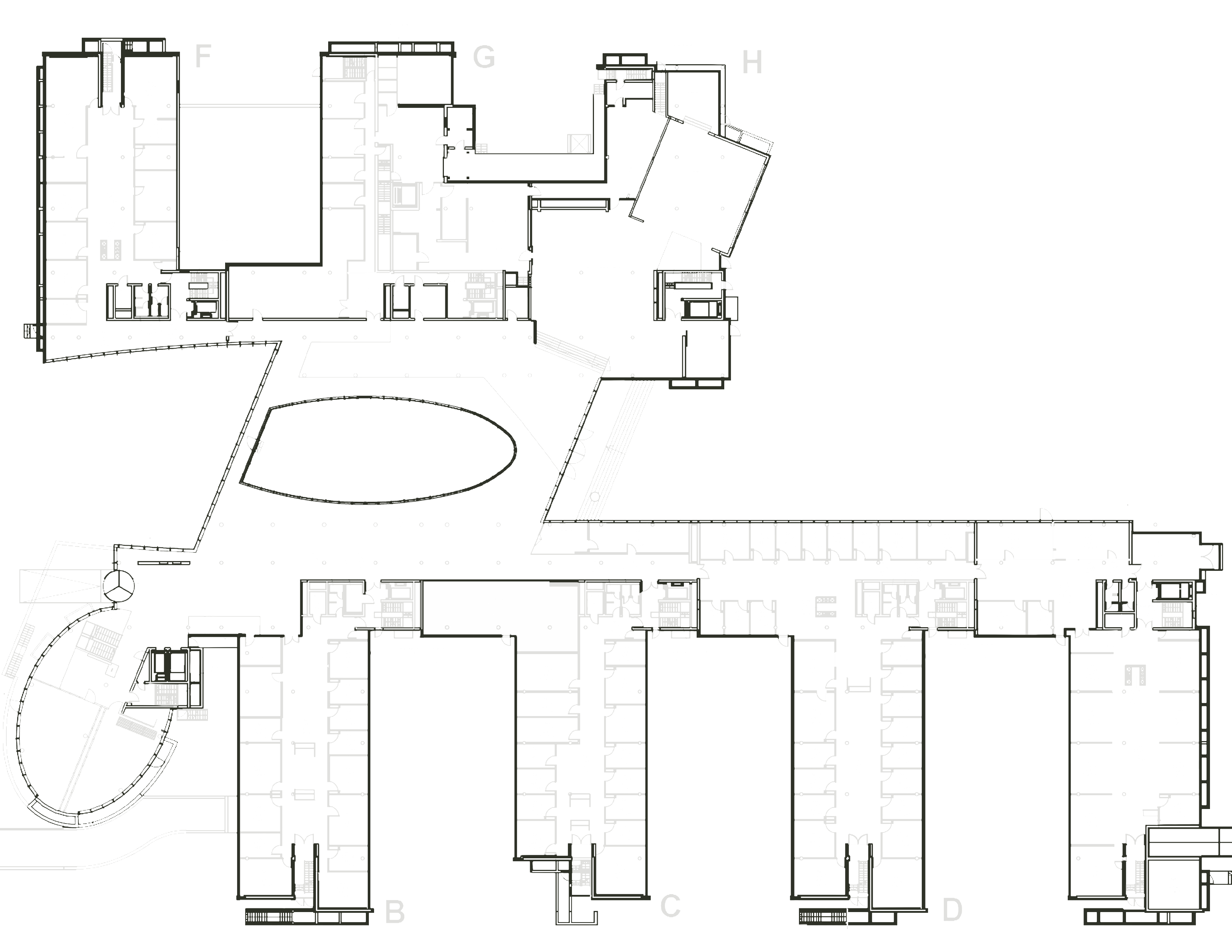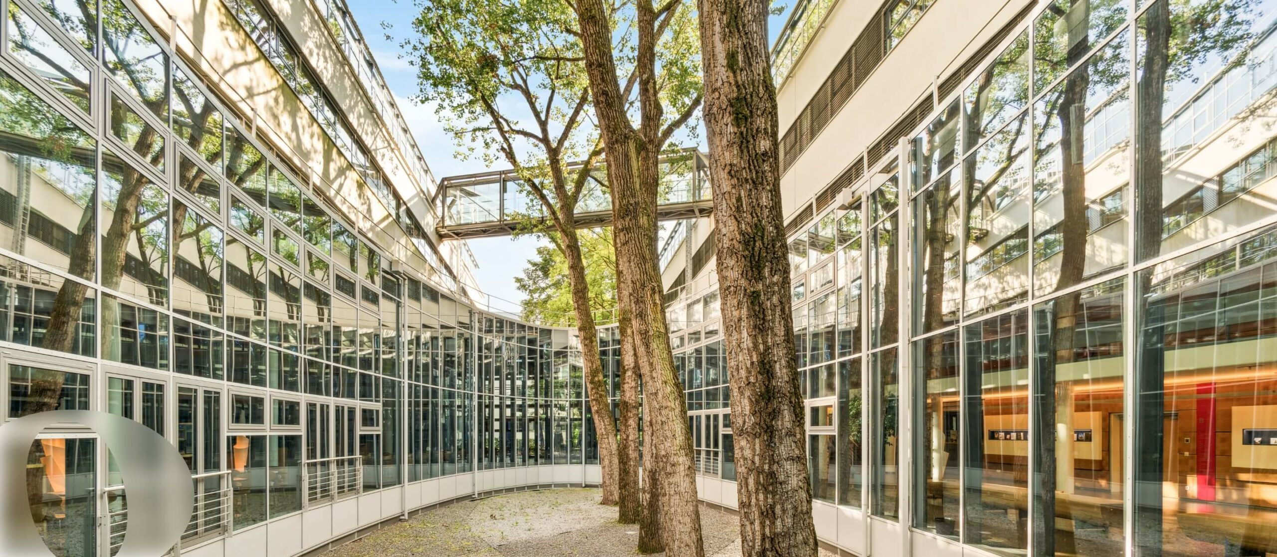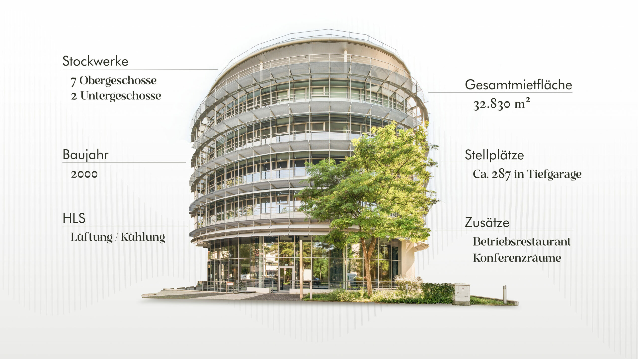 Die markante elliptische Form des Bauteils A verleiht dem Ensemble architektonische Eigenständigkeit. Mit Fingerspitzengefühl modernisiert, verbindet das Gebäude heute seine gewachsene Identität mit zeitgemäßer Funktionalität – ein Ort mit Geschichte, der Raum für neue Kapitel bietet.