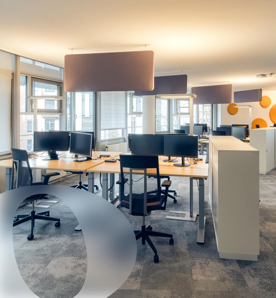 Die Büroflächen bieten vielfältige Möglichkeiten für moderne Arbeitswelten – von offenen Raumkonzepten bis hin zu klassischen Einzelbüros. Großzügige Fensterflächen sorgen für lichtdurchflutete Räume, während durchdachte Grundrisse effiziente Flächennutzung ermöglichen.